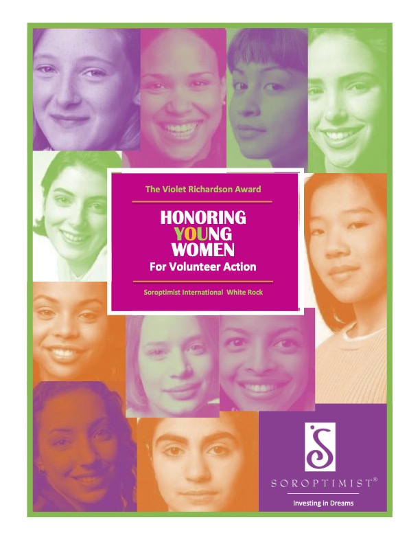 The Violet Richardson Award recognizes young women who make the community and world a better place through volunteer efforts such as fighting drugs, crime, and violence; cleaning up the environment; and working to end discrimination and poverty. Volunteer actions that benefit women or girls are of particular interest.